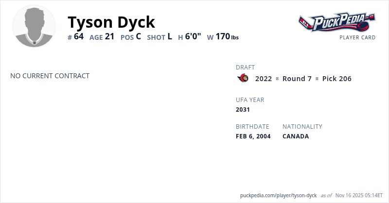 | 2021-22 | 17 | BCHL | Cranbrook Bucks | 54 | 34 | 41 | 75 | 58 | Playoffs | 6 | 4 | 1 | 5 | 0 | ||||||||||||||||