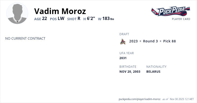 Moroz was selected 88th overall by the Coyotes in the 2023 NHL Entry Draft on Thursday.