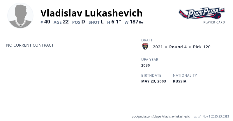 Lukashevich was drafted 120th overall by the Florida Panthers at the 2021 NHL Draft on Saturday.
