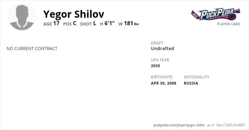 | 2023-24 | 15 | Russia U16 | Yunost Yekaterinburg U16 | 20 | 35 | 26 | 61 | 18 | ||||||||||||||||||||||