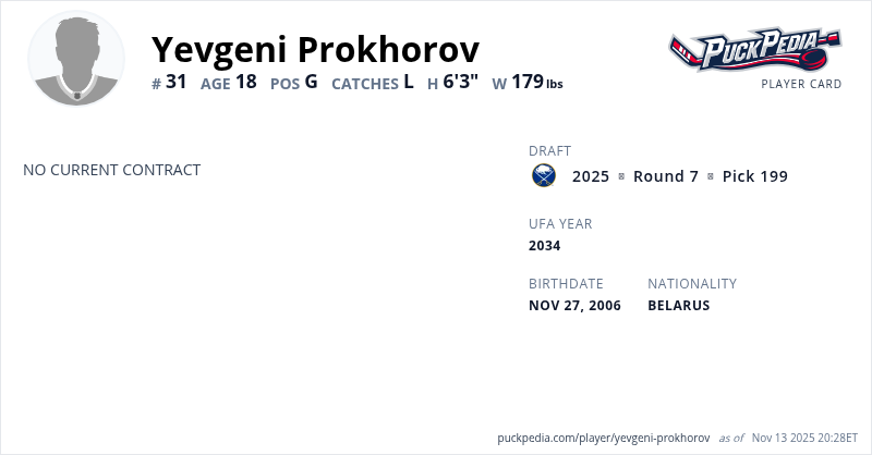 | 2025-26 | 19 | KHL | Dinamo Minsk | 0 | 0.000 | 0 | ||||||||||||||||||||||||