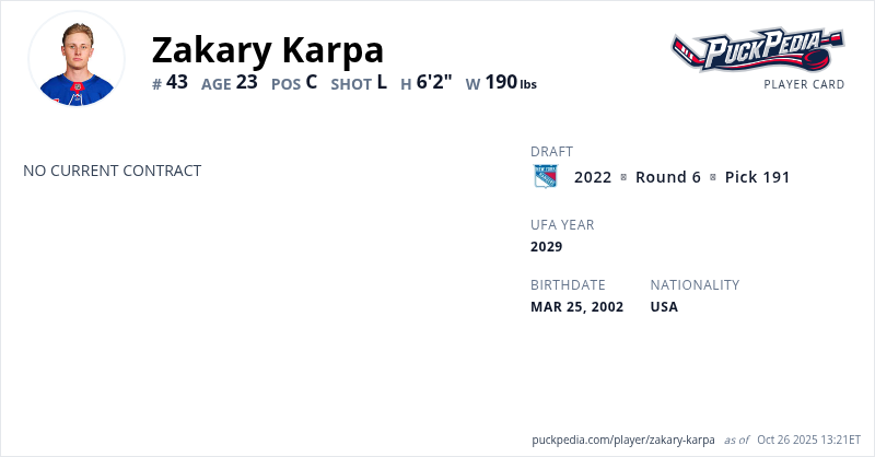 | 2025-26 | 23 | ECHL | Bloomington Bison | 3 | 1 | 0 | 1 | 0 | ||||||||||||||||||||||