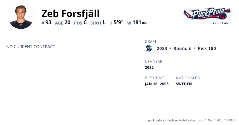 | 2025-26 | 20 | SHL | Skellefteå AIK | 16 | 0 | 0 | 0 | 4 | ||||||||||||||||||||||