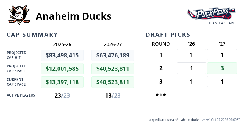 - The team's cap hit each day includes players who are on the NHL Roster as of 5pm Eastern.