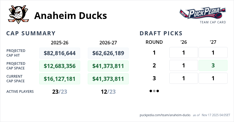 - The team's cap hit each day includes players who are on the NHL Roster as of 5pm Eastern.