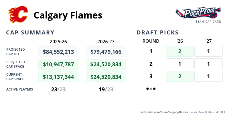 - The team's cap hit each day includes players who are on the NHL Roster as of 5pm Eastern.