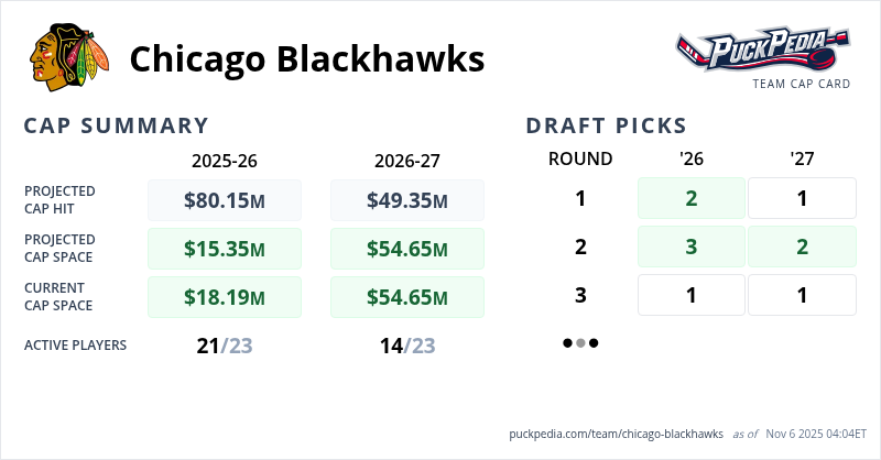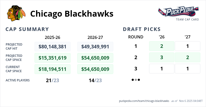 The Chicago Blackhawks acquired Josh Bailey and a 2026 second round pick from the New York Islanders for future considerations.