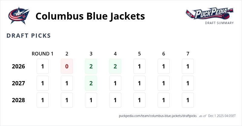 The Columbus Blue Jackets acquired a 2025 3rd round pick (#76) from the Detroit Red Wings for a 2025 4th round pick (#109) anda 2024 4th round pick