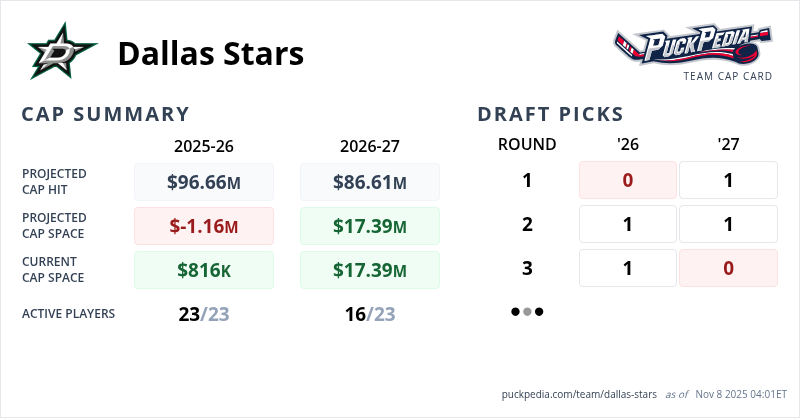 The Dallas Stars acquired Mikko Rantanen from the Carolina Hurricanes for Logan Stankoven, a conditional 2026 1st round pick, a conditional 2028 1st round pick, a 2026 3rd round pick, a 2027 3rd round pick