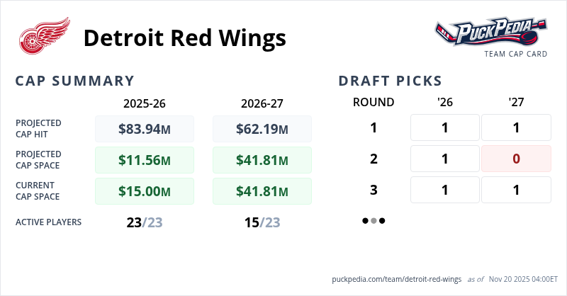 The Columbus Blue Jackets acquired a 2025 3rd round pick (#76) from the Detroit Red Wings for a 2025 4th round pick (#109) anda 2024 4th round pick