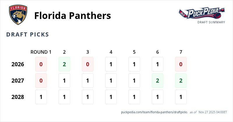 The Florida Panthers acquired Seth Jones and a 2026 4th round pick from the Chicago Blackhawks for Spencer Knight and a 2026 1st round pick