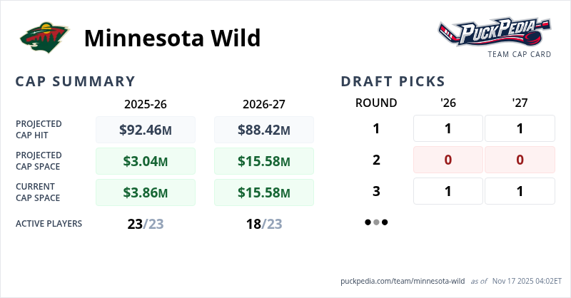 - The team's cap hit each day includes players who are on the NHL Roster as of 5pm Eastern.