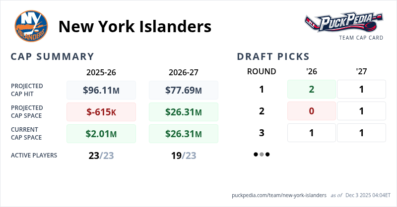 - The team's cap hit each day includes players who are on the NHL Roster as of 5pm Eastern.