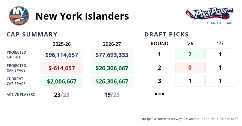 - The team's cap hit each day includes players who are on the NHL Roster as of 5pm Eastern.