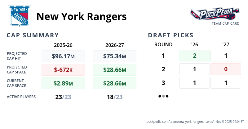 - The team's cap hit each day includes players who are on the NHL Roster as of 5pm Eastern.