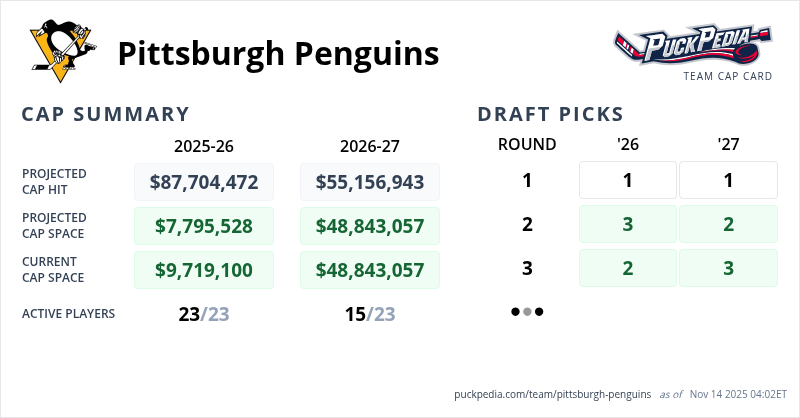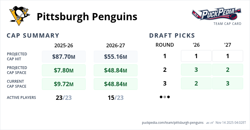 The St. Louis Blues acquired 2025 2nd Round Pick and 2026 5th Round Pick from the Pittsburgh Penguins for 2026 2nd Round Pick and 2025 3rd Round Pick