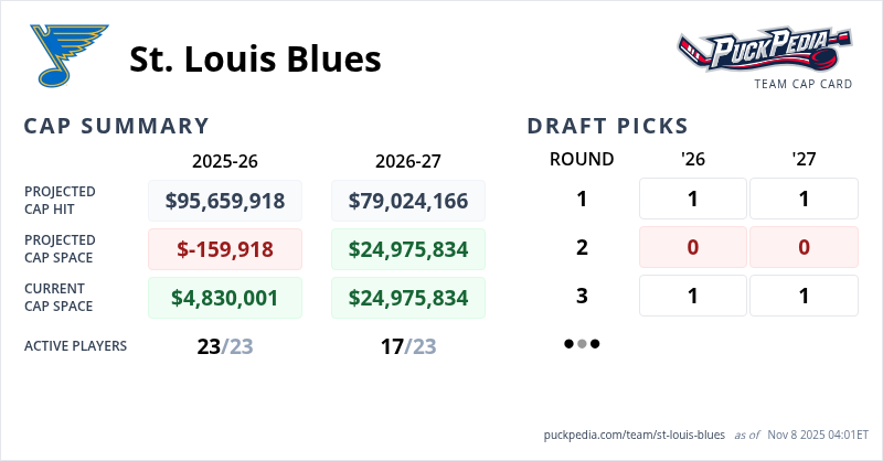 The St. Louis Blues acquired 2025 2nd Round Pick and 2026 5th Round Pick from the Pittsburgh Penguins for 2026 2nd Round Pick and 2025 3rd Round Pick