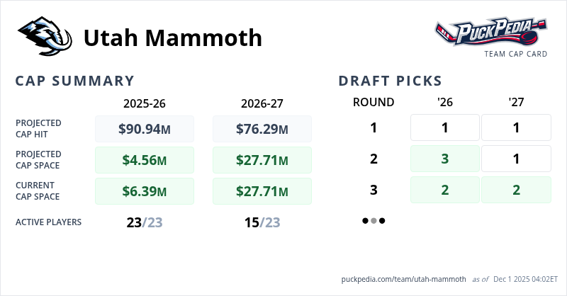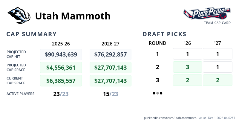- The team's cap hit each day includes players who are on the NHL Roster as of 5pm Eastern.