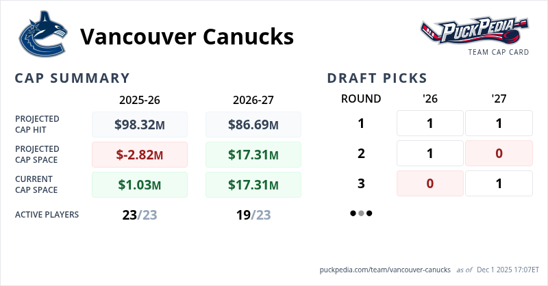 - The team's cap hit each day includes players who are on the NHL Roster as of 5pm Eastern.