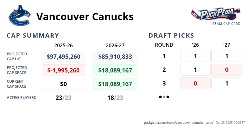 - The team's cap hit each day includes players who are on the NHL Roster as of 5pm Eastern.