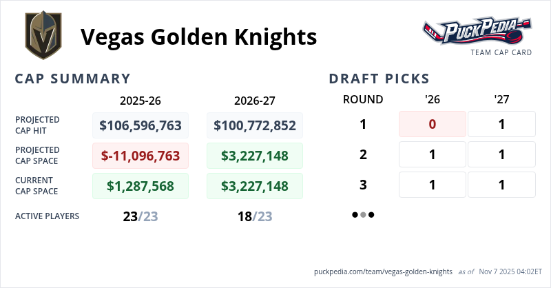 The Vegas Golden Knights acquired Mikhail Vorobyov from the Calgary Flames for a 2025 1st round pick, 2024 3rd round pick, and Daniil Miromanov (part of Noah Hanifin double retention trade)