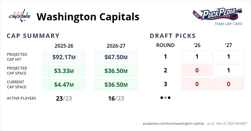 - The team's cap hit each day includes players who are on the NHL Roster as of 5pm Eastern.
