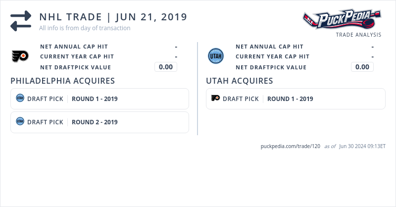 The Arizona Coyotes Acquired a 2019 First Round Pick (11th) from Philadelphia for a 2019 First Round Pick (14th) & 2019 Second Round Pick (45th)