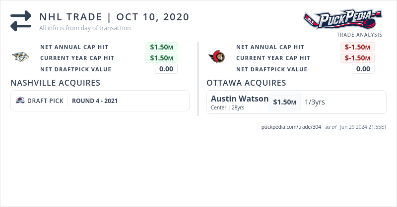 In the 2021 entry draft, the Nashville Predators used this draft pick to select Jack Matier in round 4, 124 overall.