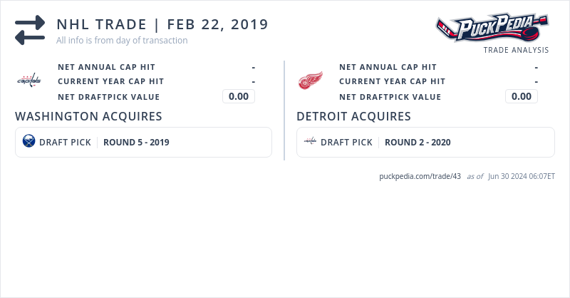 Washington Capitals acquire defenseman Nick Jensen and a 2019 fifth round pick (originally from Buffalo) from the Detroit Red Wings for defenseman Madison Bowey and a 2020 second round pick.