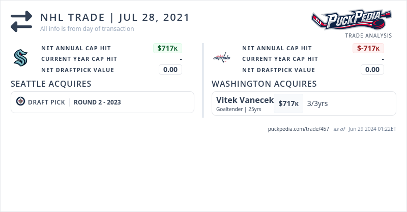 In the 2023 entry draft, the Seattle Kraken used this draft pick to select Carson Rehkopf in round 2, 50 overall.