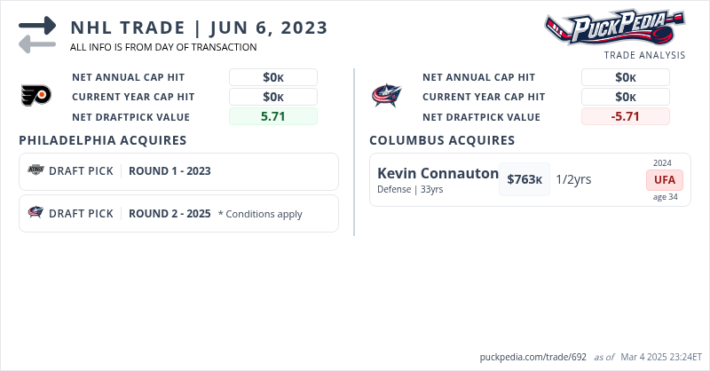 CBJ decide if pick is 2024 or 2025 2nd round pick after the 2024 1st Round (Update: CBJ decided to send the 2025 2nd)