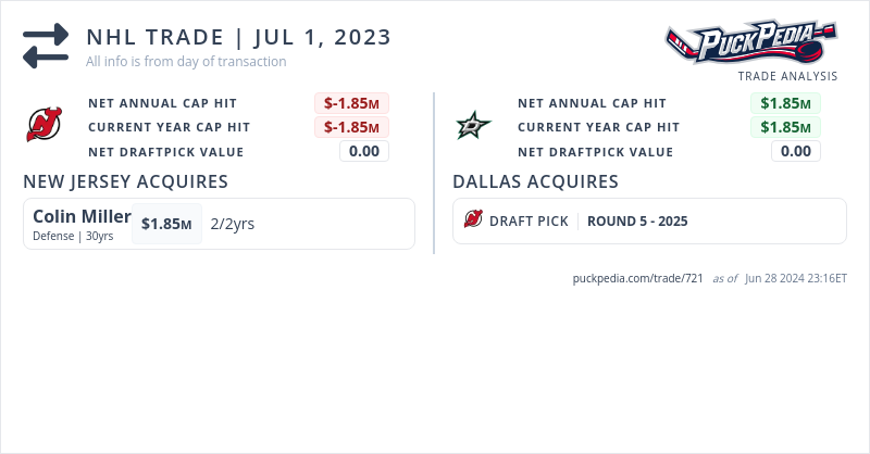 In the 2025 entry draft, the Dallas Stars used this draft pick to select Atte Joki in round 5, 146 overall.