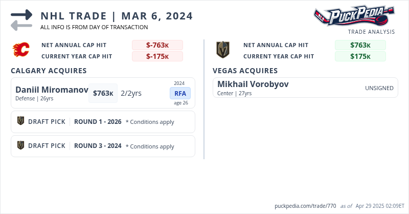 becomes 2025 2nd round pick if Vegas wins a playoff round in 2024 * condition not met
