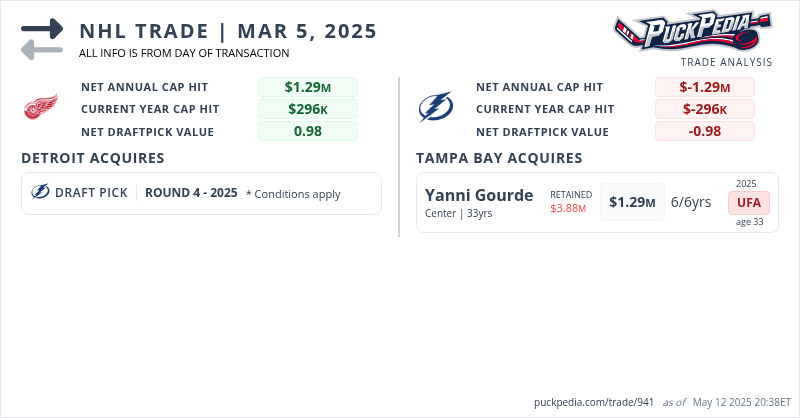 Detroit will receive the highest selection between Tampa Bay and Edmonton's 2025 4th round pick. (TBL pick transferred)
